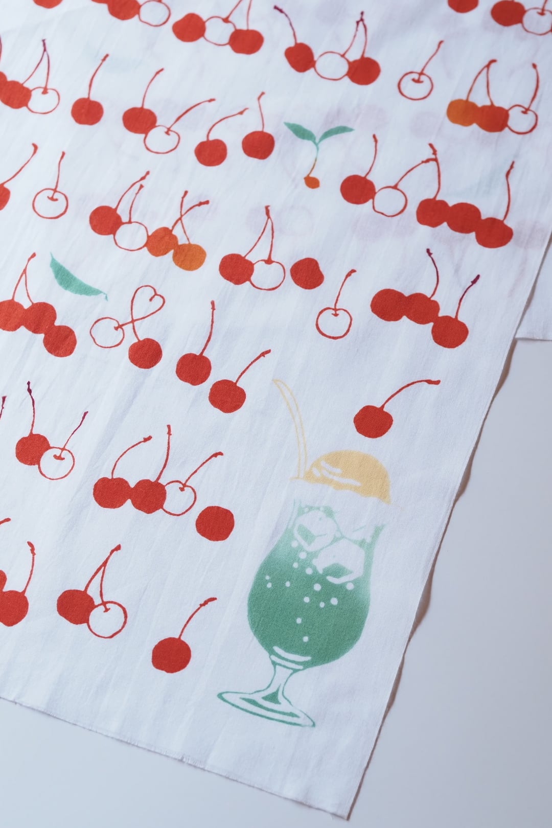 注染てぬぐい「クリームソーダとさくらんぼ」