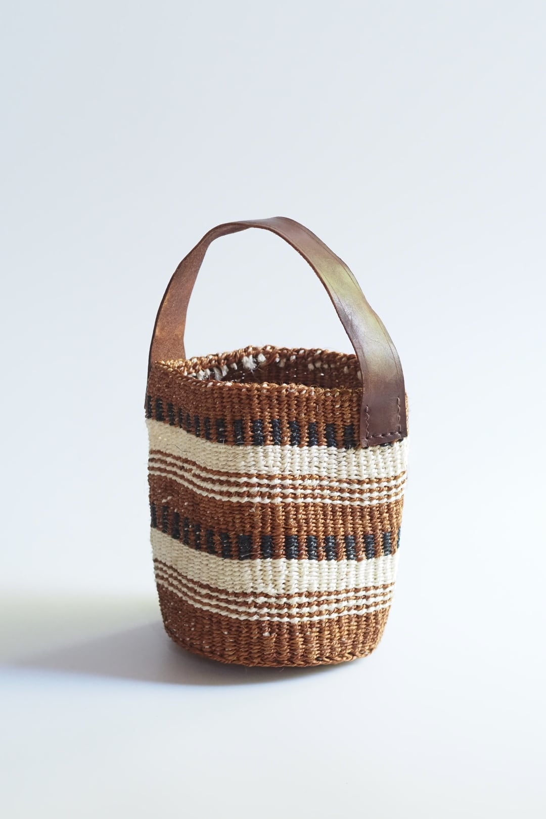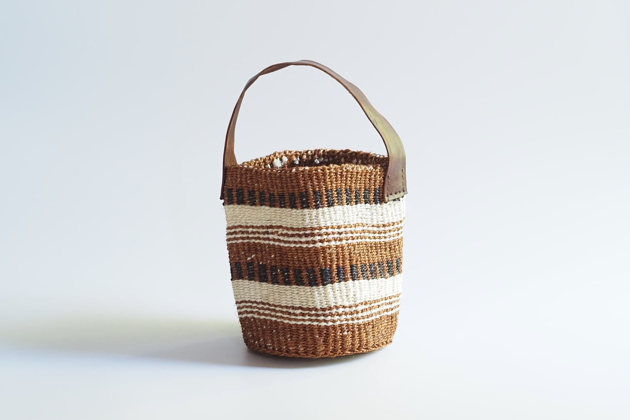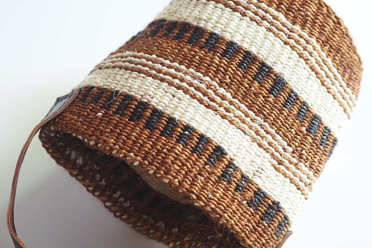 ケニアではサイザル麻で編むカゴ作りが盛んで、農村に住む女性たちによって受け継がれてきました。サイザルバスケットは、サイザルの葉を刈り取って繊維を取りだし、糸に撚ってから染めたものを、乾かし編んで作っています。