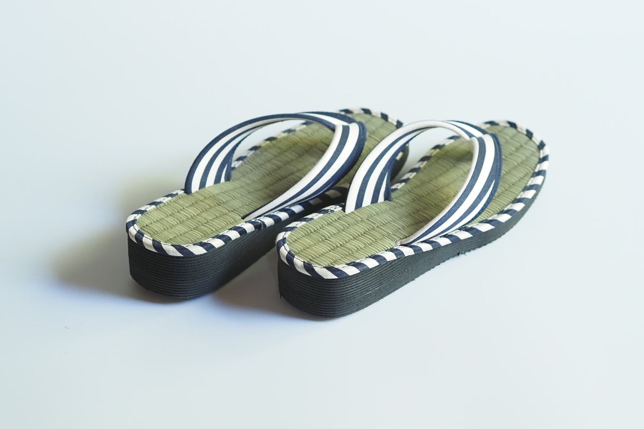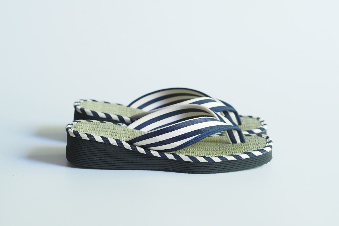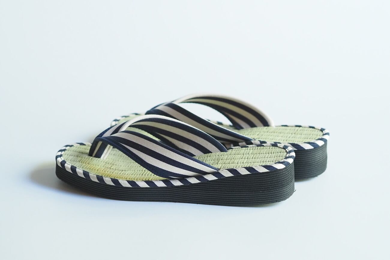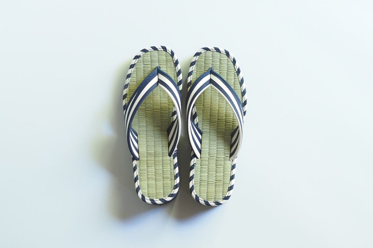 さらりとした畳素材のサンダルです。底面はゴム素材になっていて滑りにくいです。4センチのヒールですが、安定感があって歩きやすいです。全体的に細みなデザインです。