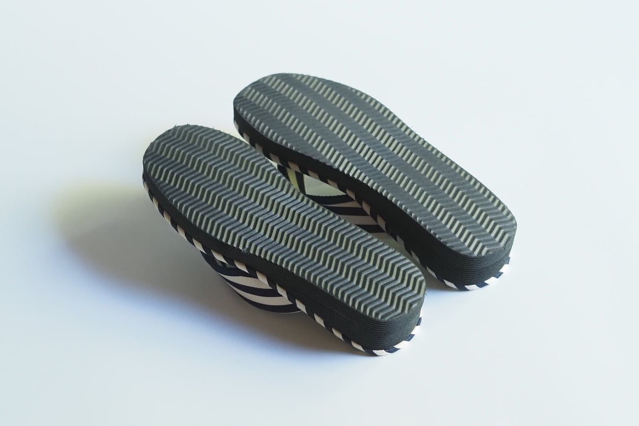 ▶外履きとしても使用できますが、底のゴム部分は柔らかいため徐々に消耗していきます。ご注意下さい。