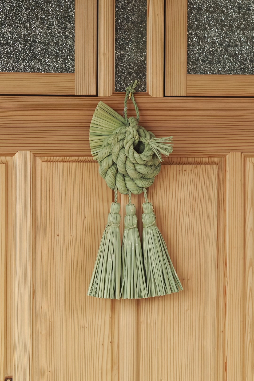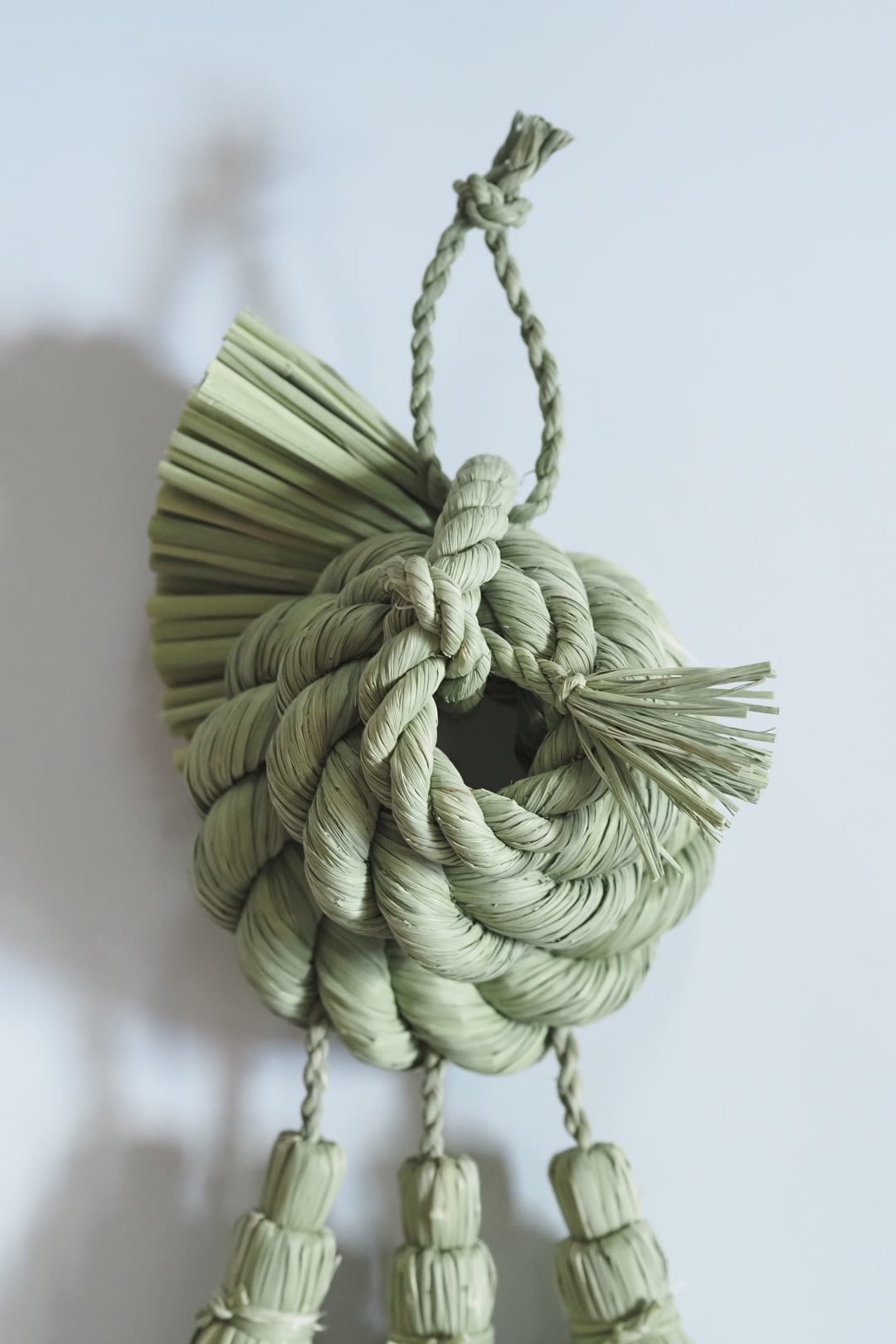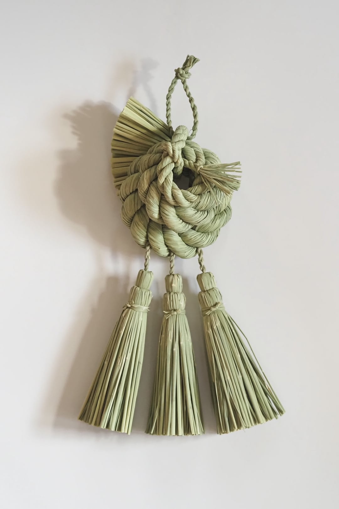こちらは、力強く綯われた三連の輪の重なりが美しいどっしりとしたお飾りです。三連の輪は、人の輪がイメージされており、良いご縁がありますようにと願いが込められています。