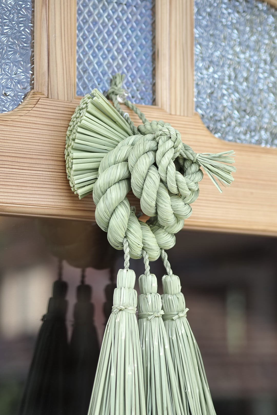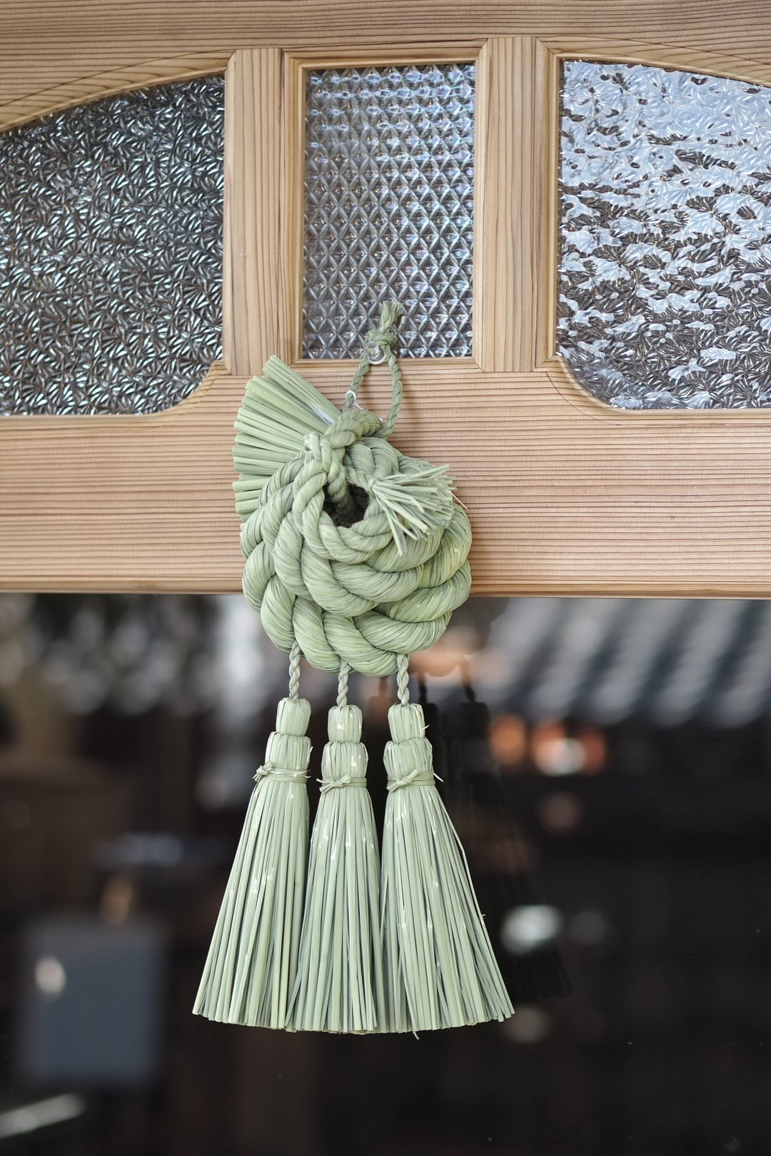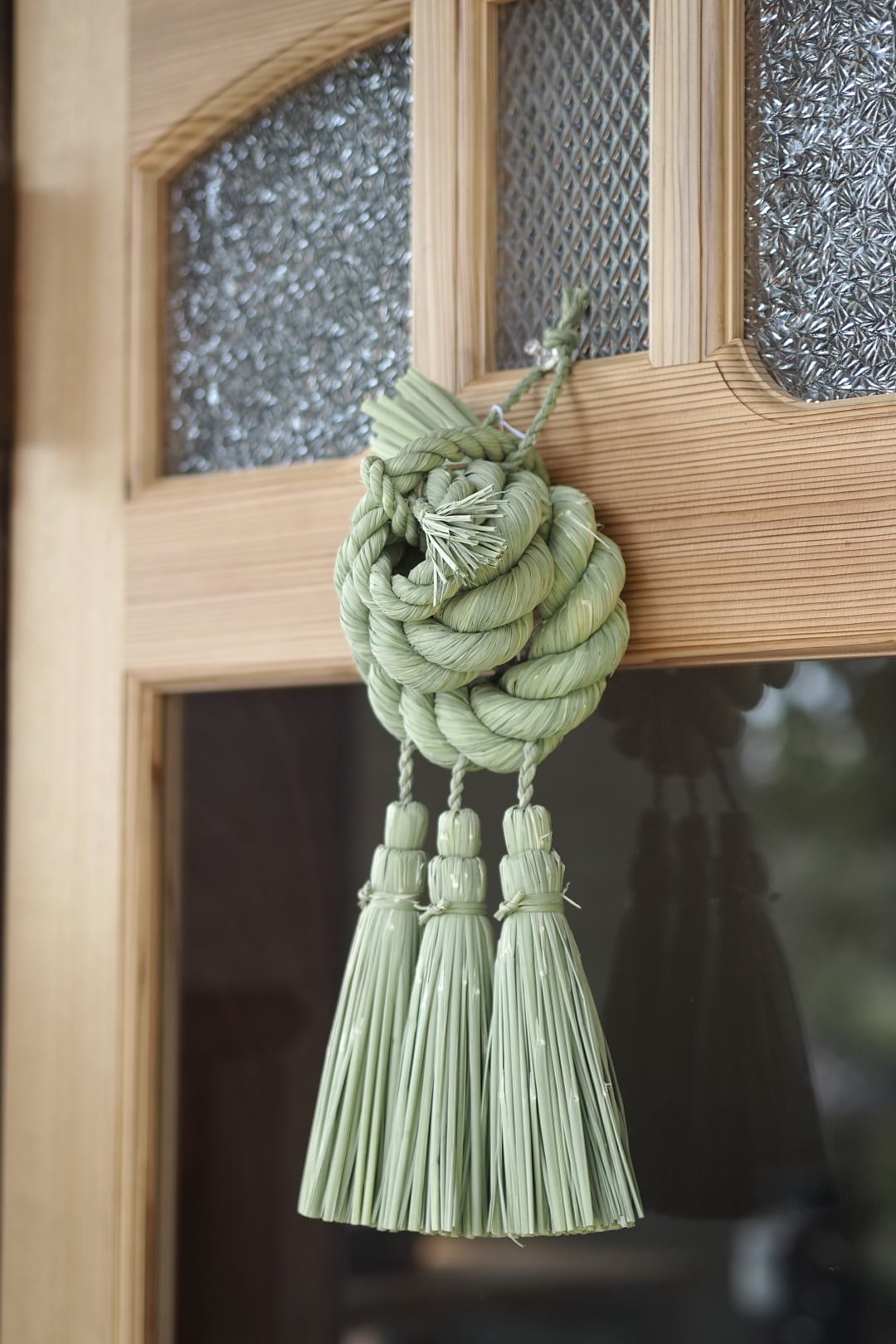 こちらは、力強く綯われた三連の輪の重なりが美しいどっしりとしたお飾りです。三連の輪は、人の輪がイメージされており、良いご縁がありますようにと願いが込められています。