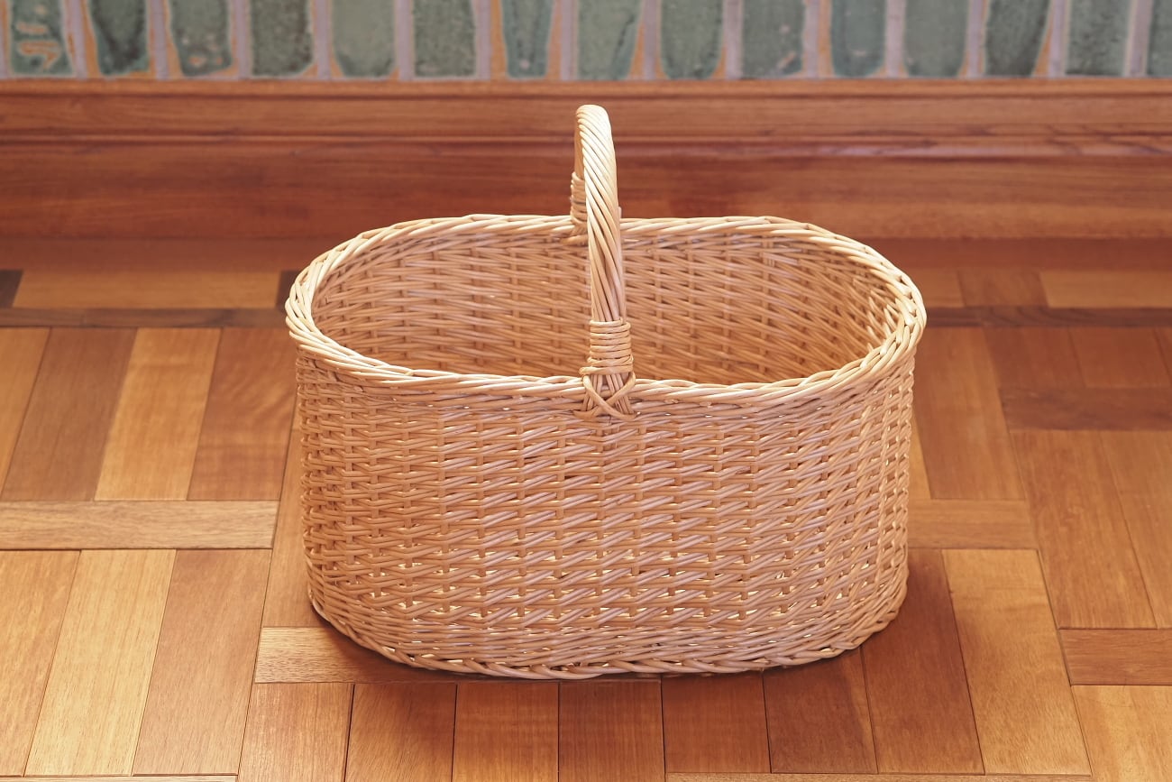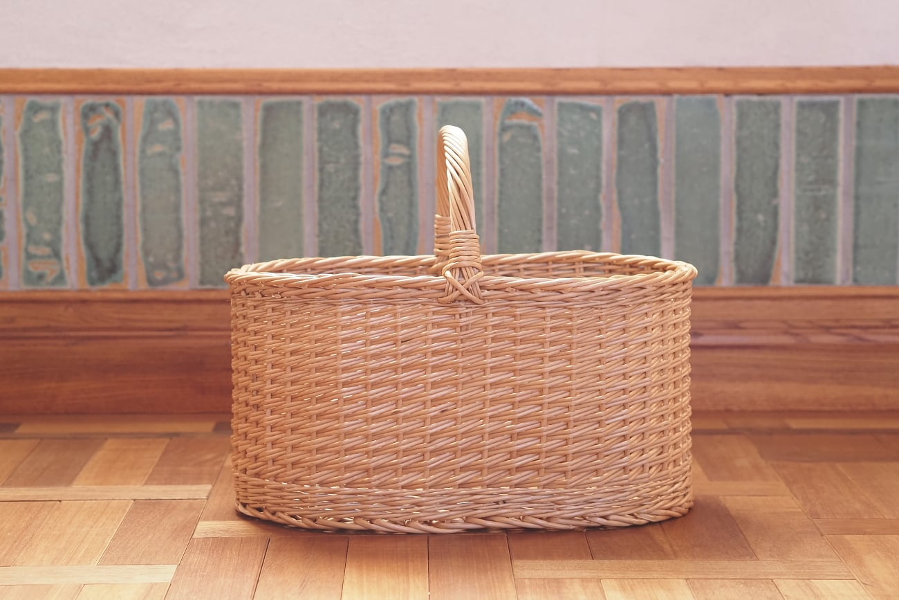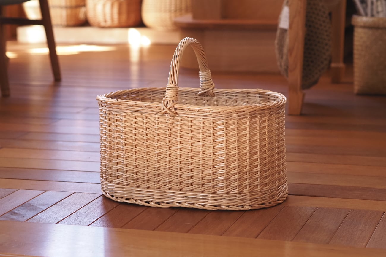 ラトビアのバスケットはがっちりと丁寧に編まれた硬めの仕上がりです。柳編みバスケットの色の違いは、表皮を剥いてる剥いていない、品種の違い、収穫時期の違い、収穫してからどれくらい寝かしたか、などによります。なかには石や鉄で染めているものもあり、少しずつ濃い色に変化していきます。日々のお買い物や、インテリア収納など様々なシーンで活躍する美しいバスケットです。