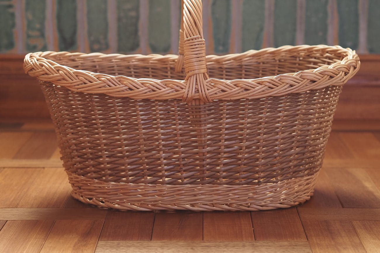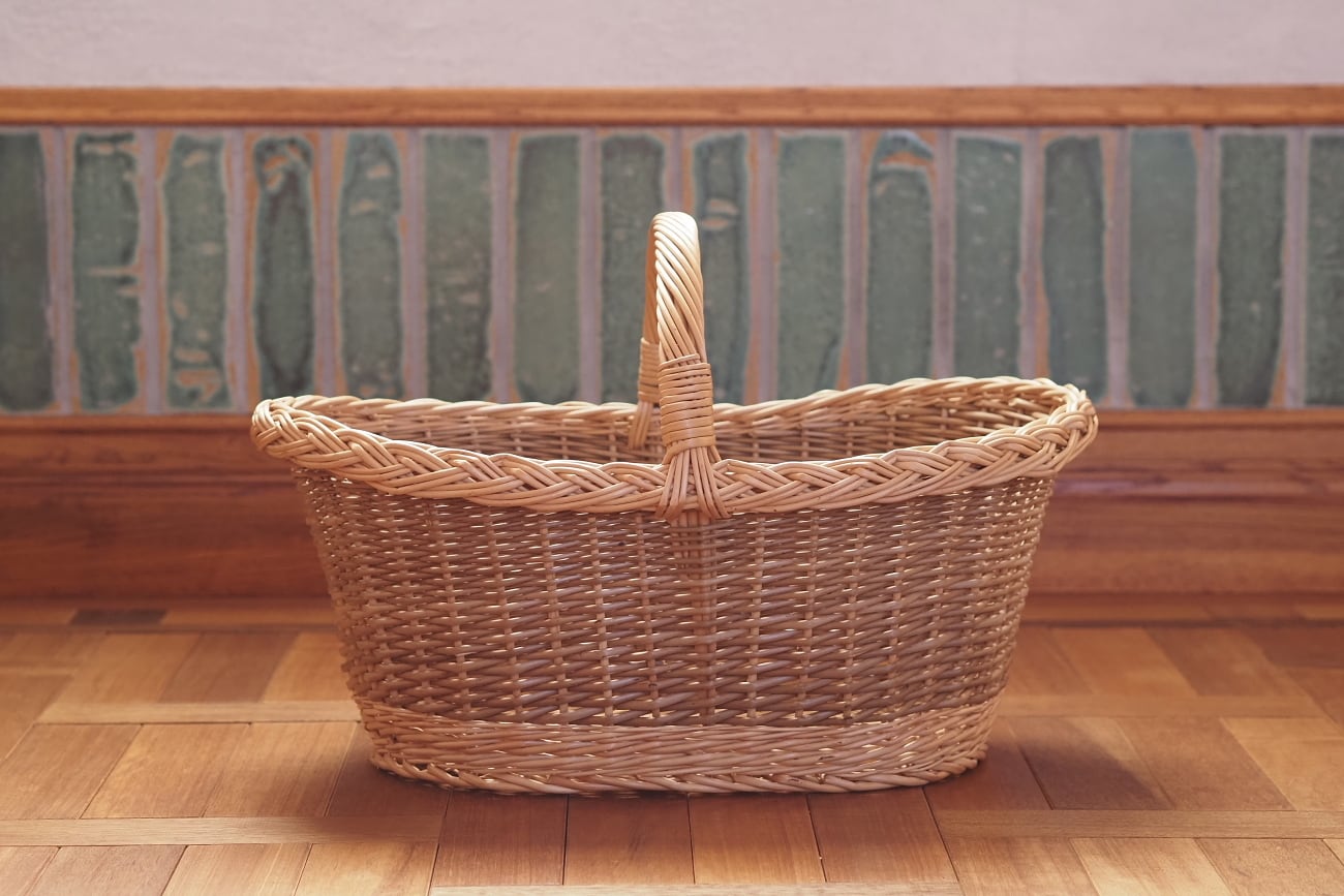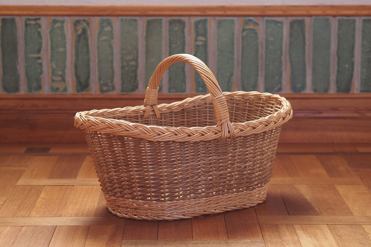 ラトビアのバスケットはがっちりと丁寧に編まれた硬めの仕上がりです。柳編みバスケットの色の違いは、表皮を剥いてる剥いていない、品種の違い、収穫時期の違い、収穫してからどれくらい寝かしたか、などによります。なかには石や鉄で染めているものもあり、少しずつ濃い色に変化していきます。日々のお買い物や、インテリア収納など様々なシーンで活躍するフォルムが素敵なバスケットです。