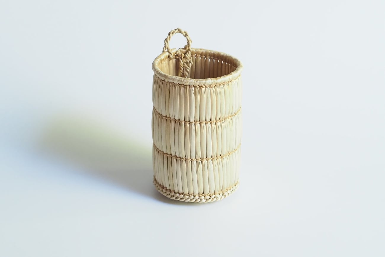 岡山県蒜山地方で600年以上前から作られている「がま細工」。主な材料となる「ヒメガマ」は軽量で油分を含むため防水・保湿性に優れています。編み目はシンプルで素朴ですが、艶々とした光沢が上品な雰囲気を醸し出しています。