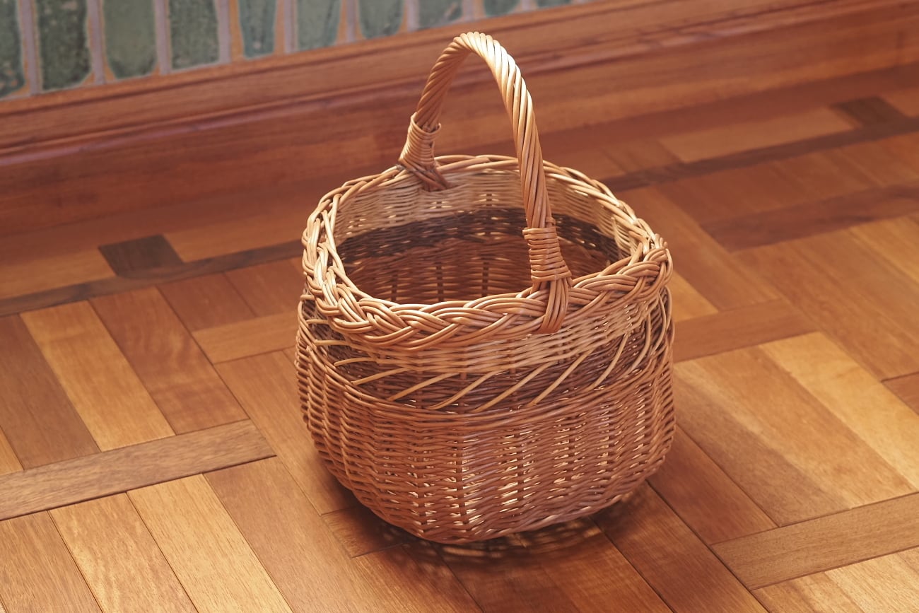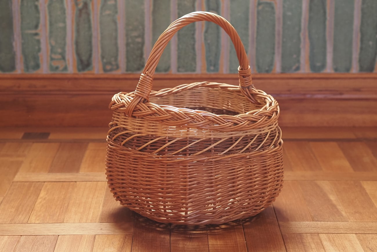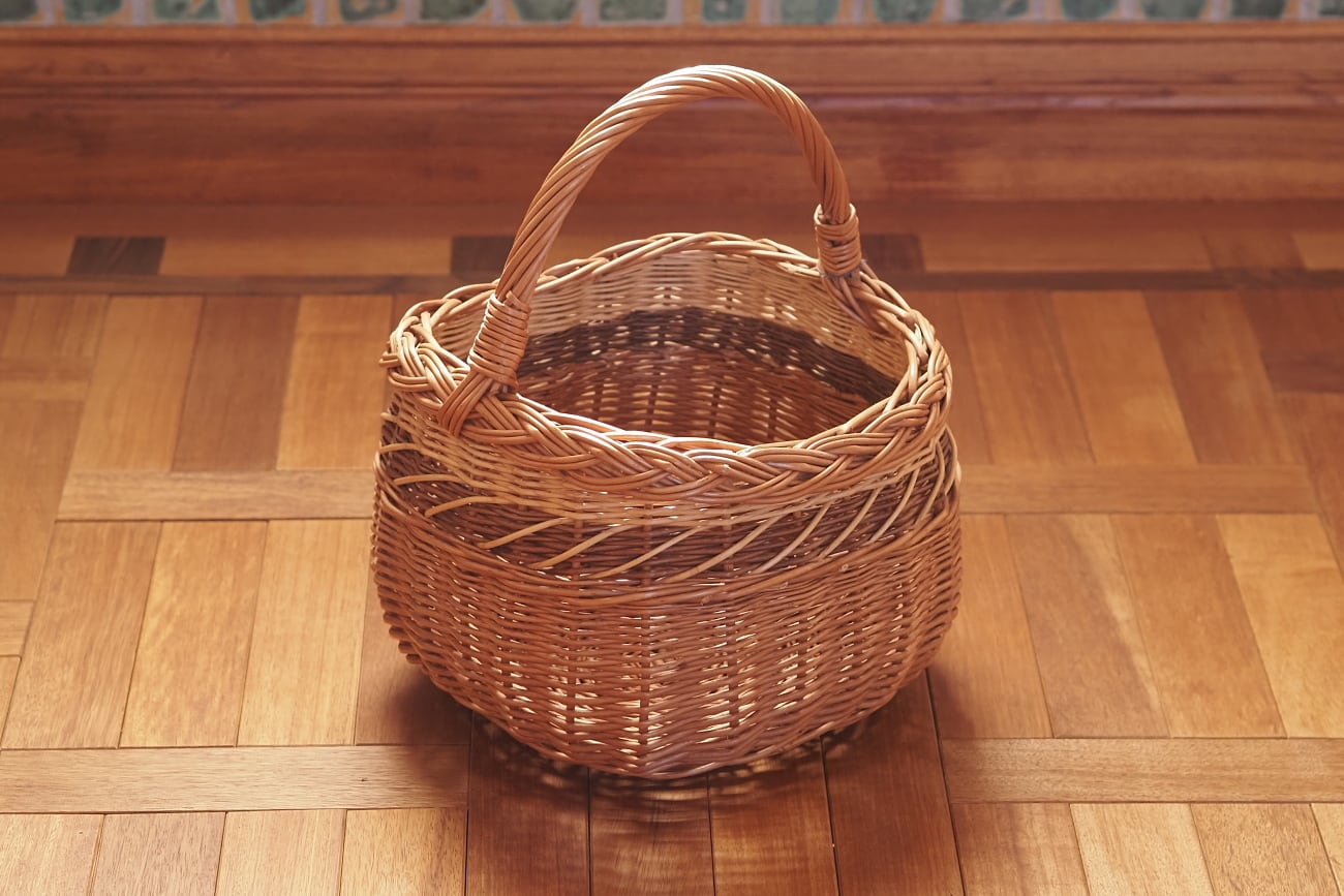 ラトビアのバスケットはがっちりと丁寧に編まれた硬めの仕上がりです。柳編みバスケットの色の違いは、表皮を剥いてる剥いていない、品種の違い、収穫時期の違い、収穫してからどれくらい寝かしたか、などによります。なかには石や鉄で染めているものもあり、少しずつ濃い色に変化していきます。日々のお買い物や、インテリア収納など様々なシーンで活躍する美しいバスケットです。